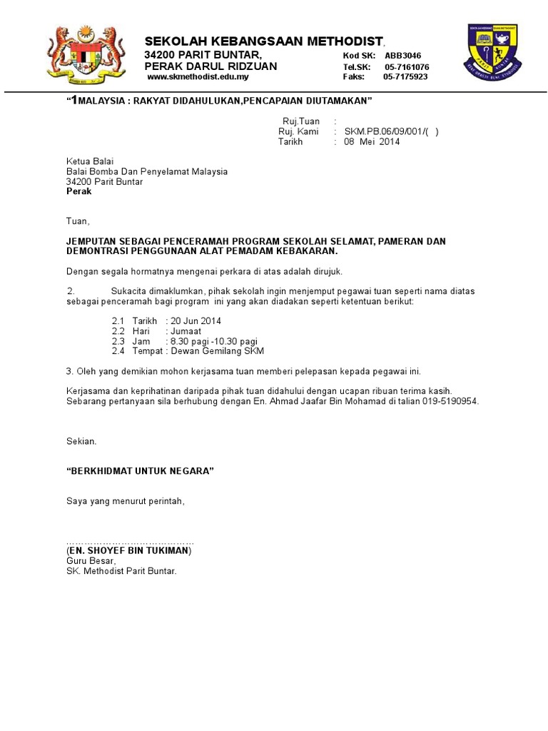 Surat Jemputan Penceramah from imgv2-2-f.scribdassets.com Persatuan bahasa melayu, sekolah menengah kebangsaan alor gajah Banyaknya peminat yang ingin bekerja di pertamina maka persaingan akan semakin ketat, maka dari itu anda harus dapat membuat surat lamaran kerja yang baik dan benar. Berikut dikongsikan 2 contoh surat rasmi buat panduan mereka yang ingin membuat satu karangan surat untuk tujuan tertentu seperti untuk membuat aduan rasmi kerajaan jalan rosak dan berlubang. Surat pengalaman kerja bukan surat sembarangan, karena tidak dapat dibuat oleh pihak pertama saja, yakni diri sendiri. Untuk lebih jelasnya, berikut kami cantumkan beberapa contoh surat kuasa pengambilan uang di. Jemputan memberi ceramah teknik menjawab soalan mata pelajaran sains di sk bukit rahmat. Sekolah kebangsaan bukit rahmat kampung bukit rahmat, 84700, gersik, tangkak, tel : Selain itu, ada 20 contoh surat permohonan yang dapat dijadikan acuan untuk mempermudah pengerjaan surat tersebut.