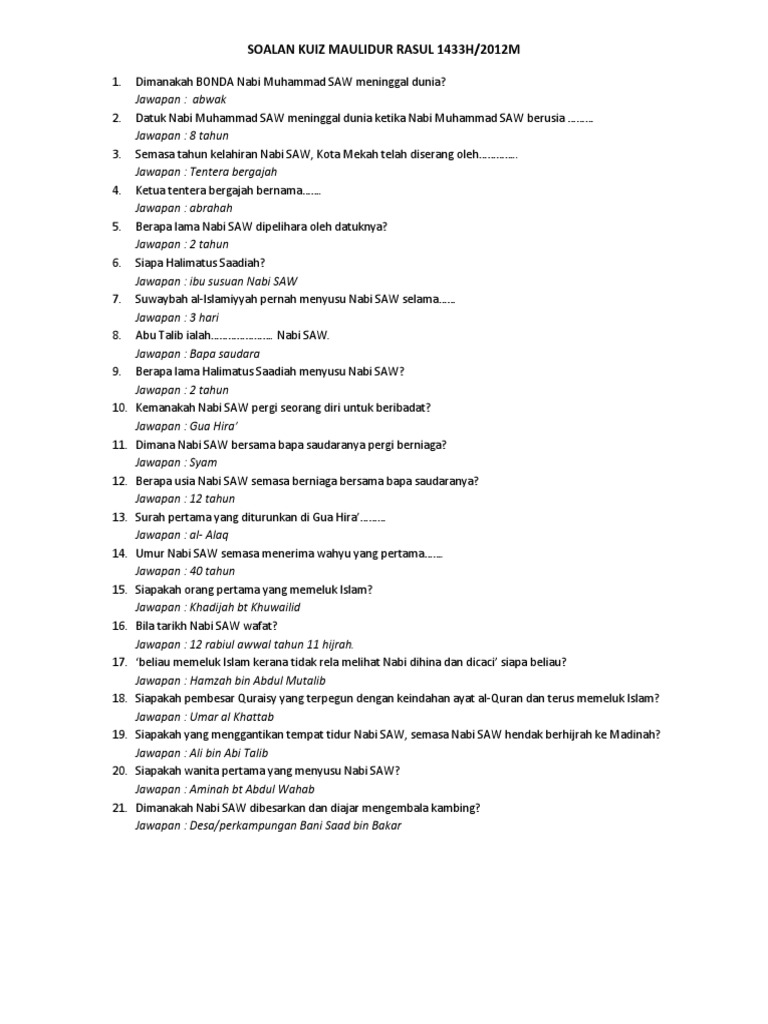 Soalan Kuiz Maulidur Rasul : So please help us by uploading 1 new document or like us to download