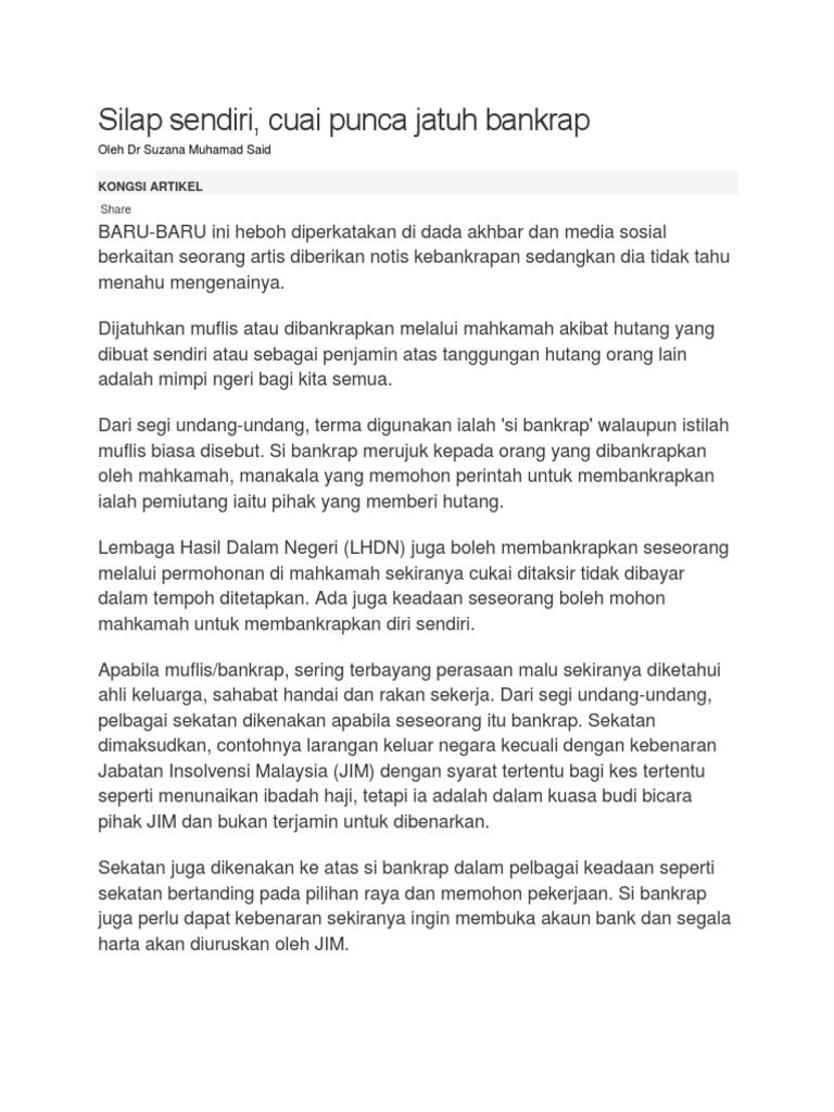 Kronologi Anak Muda Yang Ramai Jatuh Muflis Hafizshafie Com from i0.wp.com (c) tidak boleh keluar negara tanpa kebenaran jabatan insolvensi. Saya telah disenarai hitam oleh bank/diisytiharkan sebagai muflis dan tidak dapat membuka akaun bank. Atau pun trasnfer duit dari akaun maybank2u.premier ke akaun bank selain maybank. Beri penanda pada kotak saya setuju, teruskan dengan klik butang carian laporan. Pemohon tidak diwajibkan mengisi maklumat akaun bank semasa permohonan. Namun, ini bermaksud jika seseorang mempunyai hutang sebanyak tersebut atau lebih sahaja boleh diisytiharkan muflis dengan nama lain bankrap. Tidak muflis, bankrup atau blacklisted (ccris/ctos) memiliki pasport yang sah (bagi bukan warganegara) bagaimana nak buka akaun cds? Pihak jabatan insolvensi akan mengeluarkan surat kebenaran untuk mebuka akaun dengan mana mana bank atau memberi arahan untuk membuka semula akaun yang telah dibekukan akibat banrupsi.